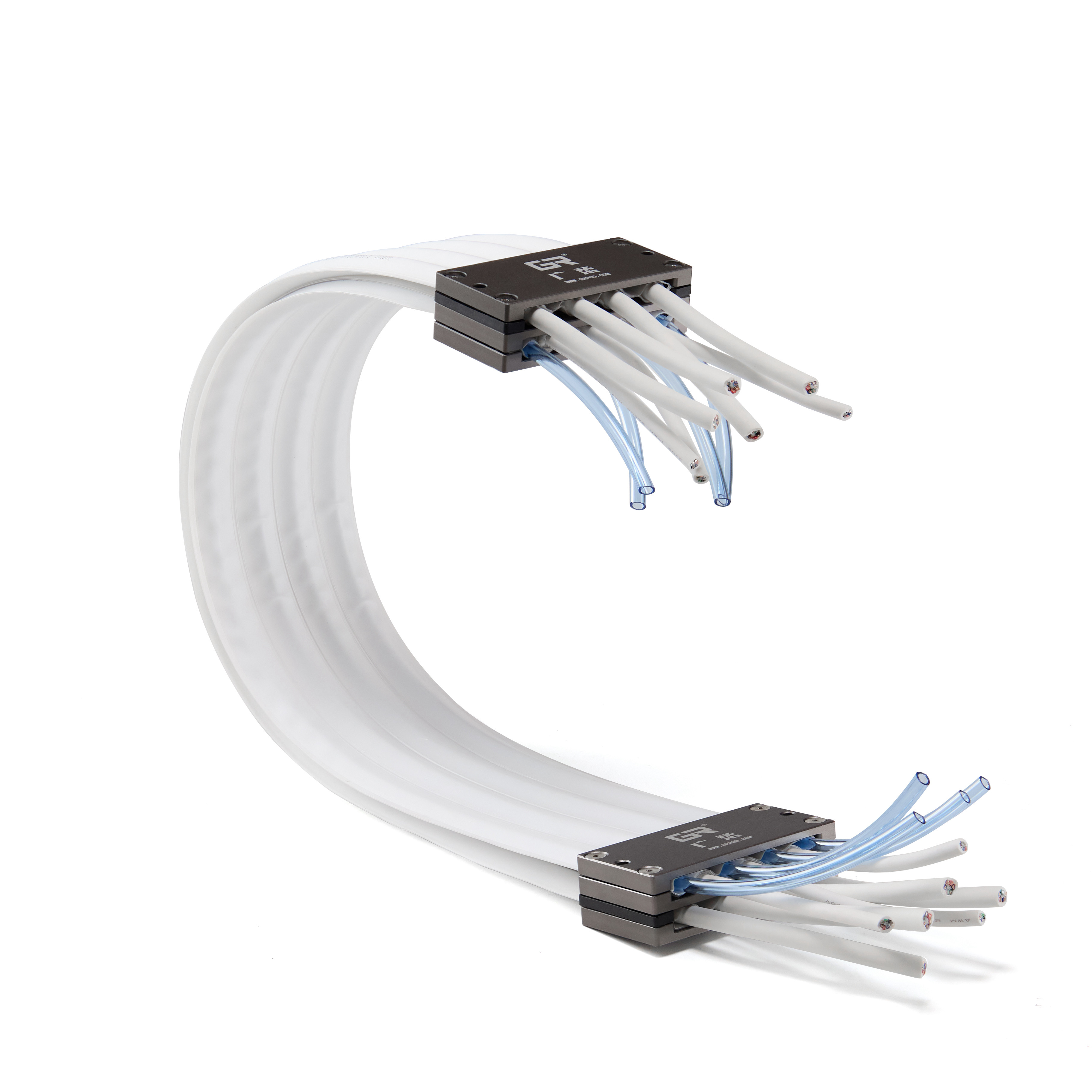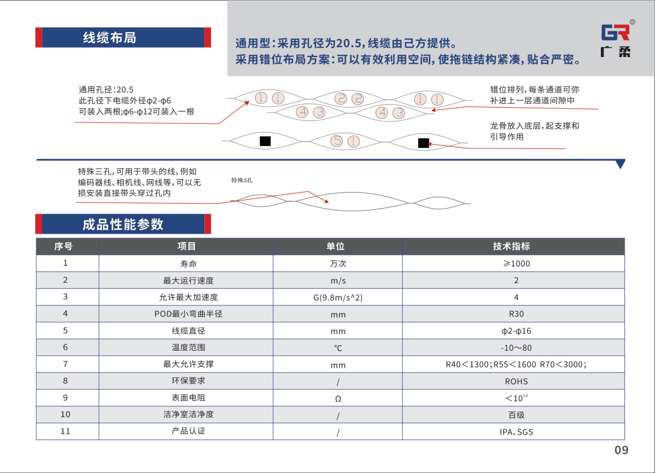 中科依据市场情况潜心研究ePTFE材料,根据其低摩擦系数,不粘尘,化学惰性等特性设计出抗静电、低集尘及高柔的创新解决方案中科抗静电无拖链。